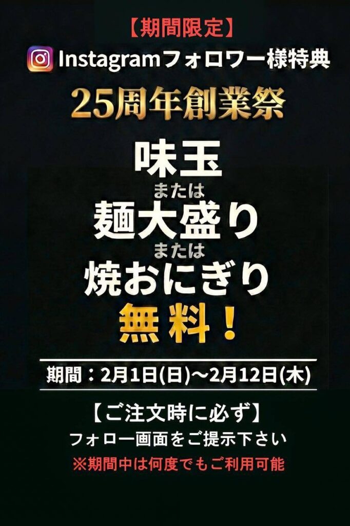 らーめん工房りょう花は、25周年創業祭を迎えることが出来ました!