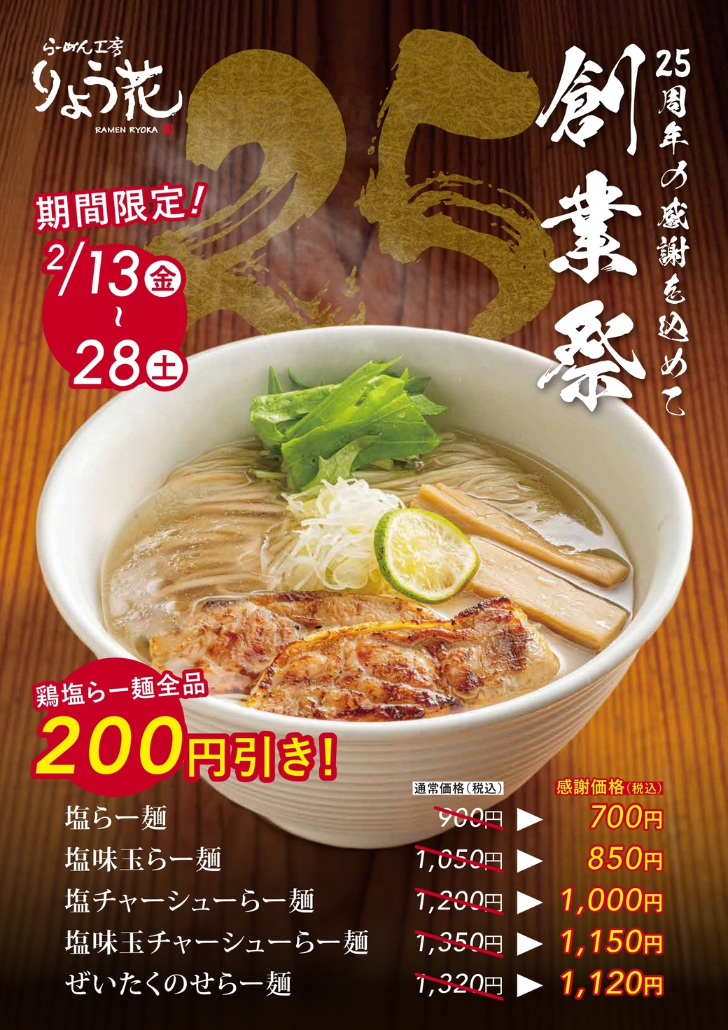 いくども改良を重ね、より一層深い味わいに進化した「塩らー麺」を特別価格でご提供させていただきます!!